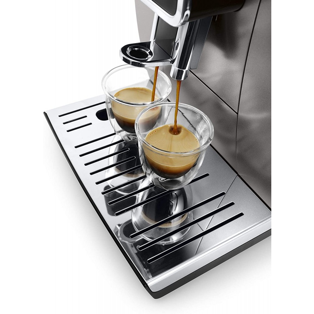 Macchina Caffè Automatica Espresso con Macinacaffè ed Erogatore di Vapore Caffè in Grani colore Titanio De Longhi Dinamica ECAM 359.37.TB
