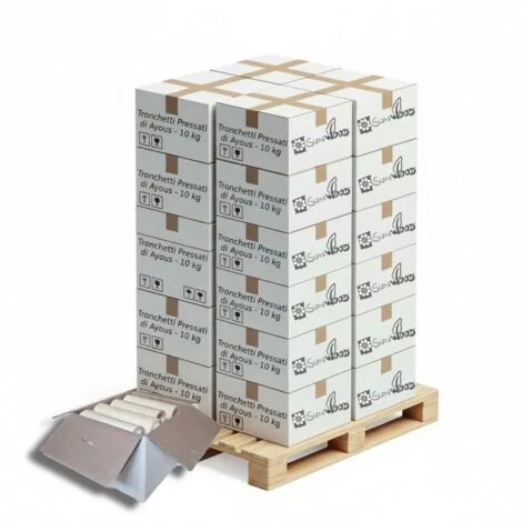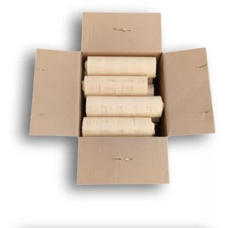 Materiale: Legno pressato di ayous di alta qualitàDimensioni: Circa 20-24 cm di lunghezza e 7 cm di diametroContenuto: 12 cartoni da 10 kg ciascunoPeso totale: Circa 120 kgPotere Calorifico: Circa 5 kWh/kgImballo: Scatola di cartone riciclabile da 28×22,5×29 cm
